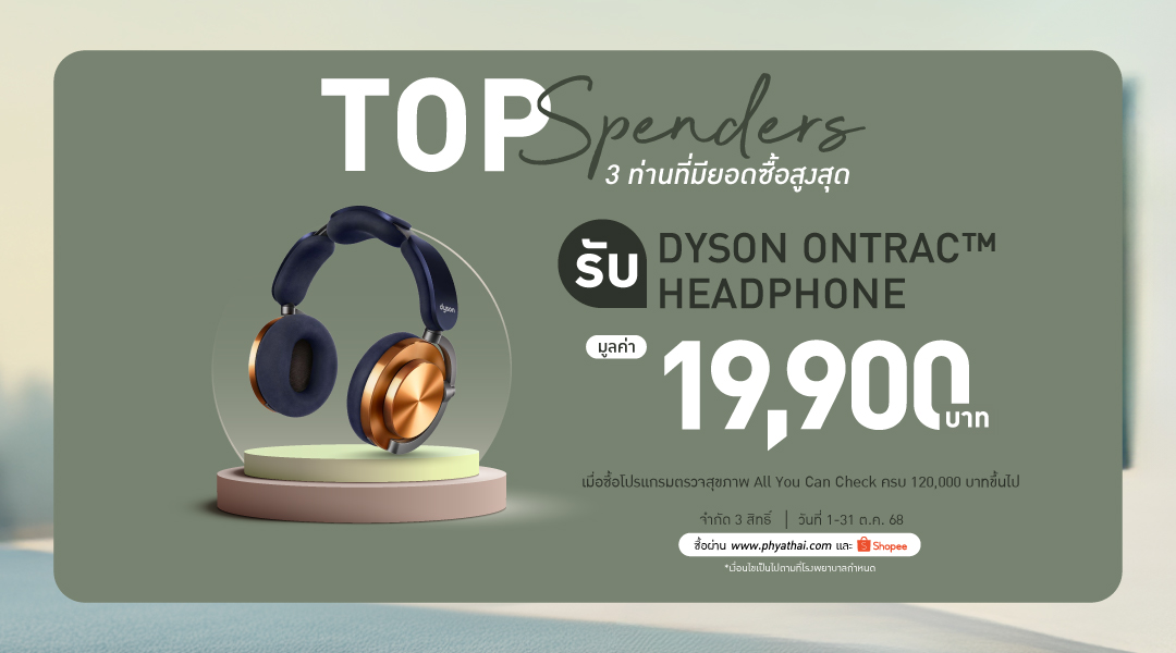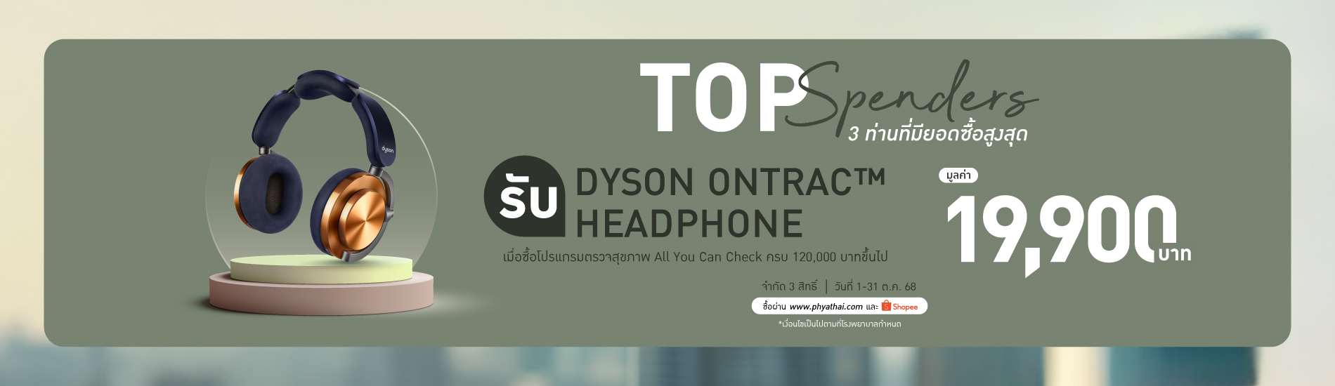 1. เมื่อซื้อโปรแกรมตรวจสุขภาพ All You Can Check ครบ 120,000 บาทขึ้นไป รับ Dyson OnTrac™ Headphone มูลค่าสูงสุด 19,900 บาท (จำกัดรางวัลละ 3 สิทธิ์แรกที่ลงทะเบียน)