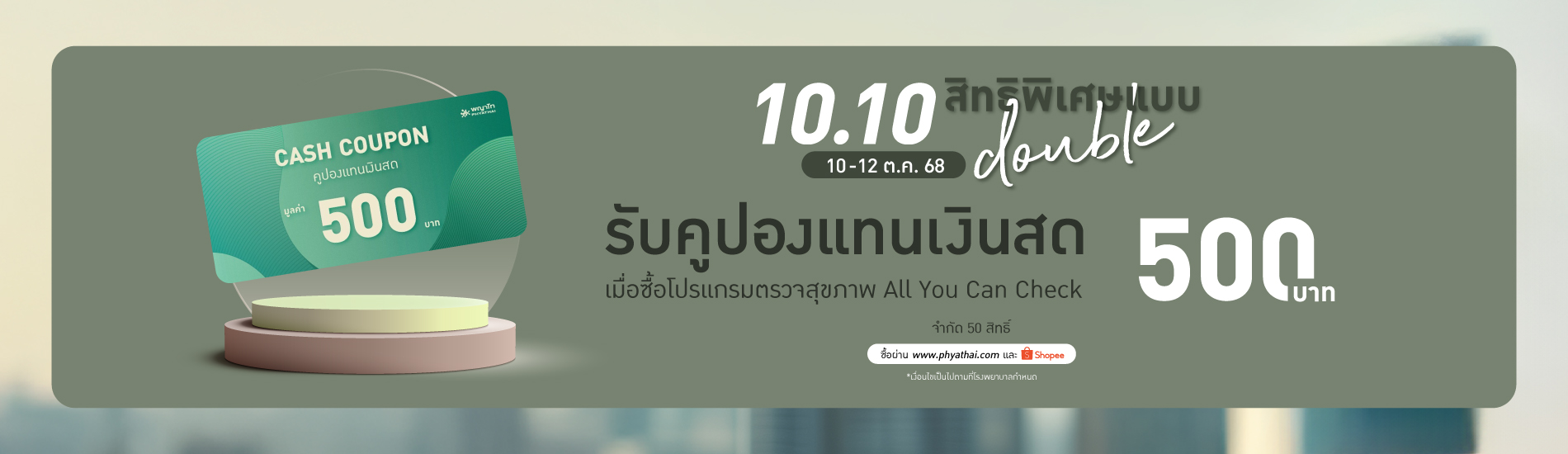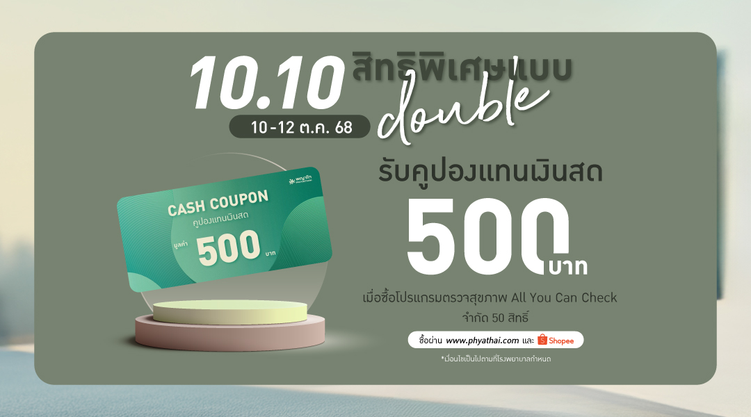 3. คูปองนี้สามารถใช้ชำระแทนเงินสดได้ที่ โรงพยาบาลพญาไท ทุกสาขา (ยกเว้นร้านค้าเช่าพื้นที่และสินค้า Phyathai Life)